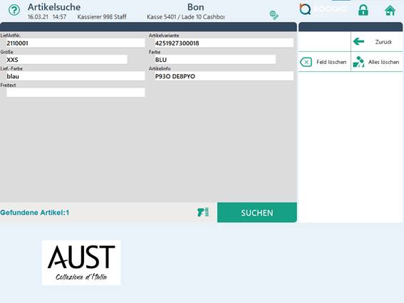 • Wenn Nummer nicht vorhanden: In Feld “Freitext” die Artikelbezeichnung (Bsp. Strickjacke) eingeben.