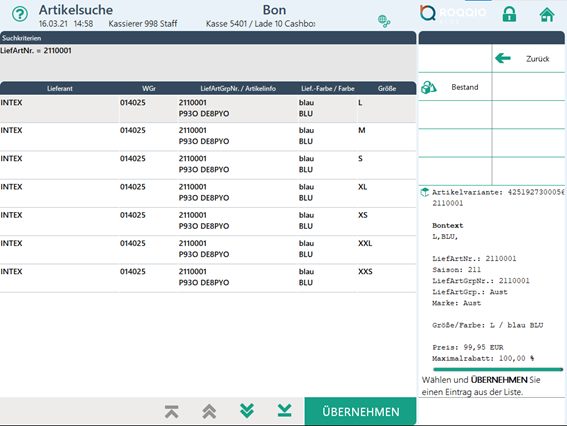 Hinweis: Die Artikelnummer kann nicht direkt im Scanfeld (Feld in dem beim Scannen des Artikels der Artikel erscheint) eingegeben werden