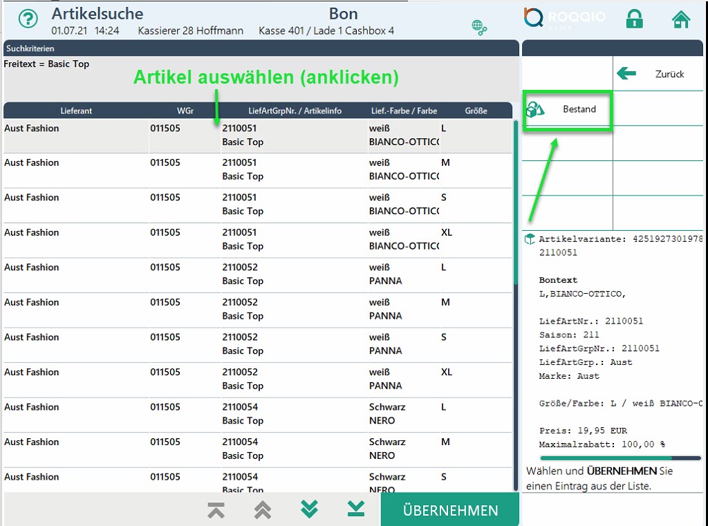 Schritt-für-Schritt-Anleitung – Bestand/Bestände über Futura4POS sehen