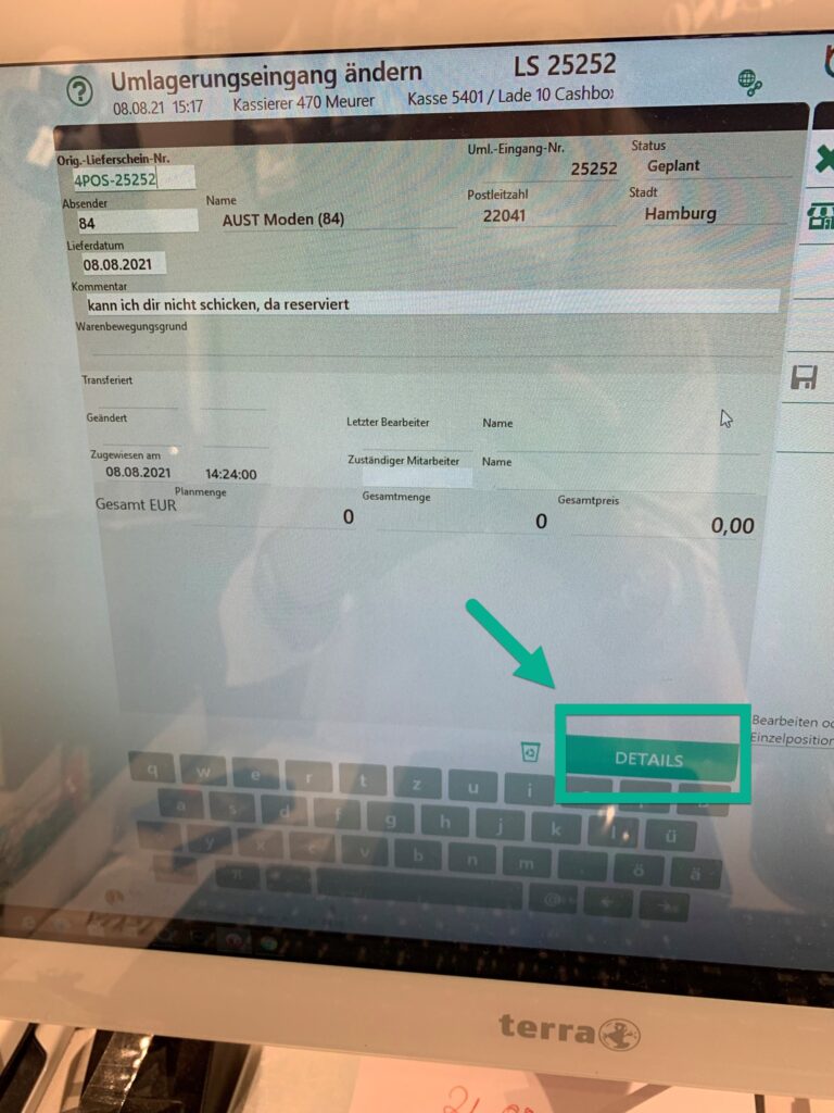 - Klicke im Menü der Kasse (Futura4Pos) auf Wareneingang/-ausgang