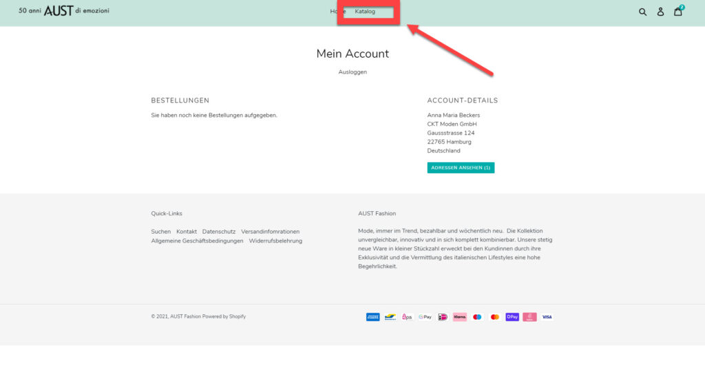 3. Klicke auf “Katalog”, um die verfügbaren Produkte zu sehen und auszuwählen
