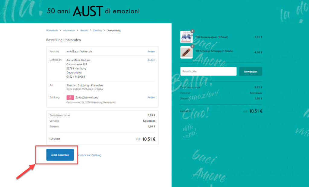 11. Überprüfe deine Bestellung & Angaben ein letztes Mal und klicke auf “Jetzt Bezahlen”