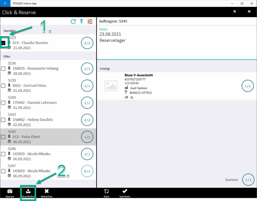 Wie du eine Bestellung bei einer anderen Filiale aus der Instore App abschließen/rausnehmen kannst, so dass sie in der Liste bei Click & Reserve nicht mehr angezeigt wird, erklärt dieser Beitrag.