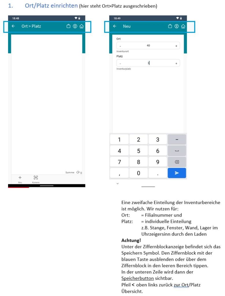 Die Ort/Platz Logik in diesem Programm bietet die Möglichkeit den Laden in mehrere Bereiche aufzuteilen. Dies ist hilfreich, weil man hier kurz mal ein Zwischenzählung machen kann. Die App zeigt jeweils die Zwischensumme für den Platz. Hier kann man dann kurz nachzählen, ob man nichts vergessen hat.