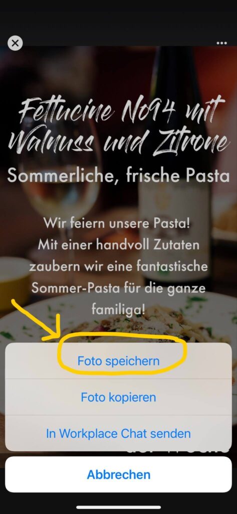 Schritt 3: Klicke auf “Foto speichern”. Das Foto befindet sich nun in deinem Fotoalbum auf deinem Iphone/Ipad zu weiteren Verwendung (Bspw. posten des Bildes in deiner WhatsApp Gruppe)