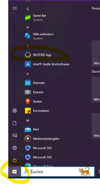 Kein Problem, klicke unten rechts oder Mittig Rechts auf die Windows Fahne, scrolle herunter bis zum Buchstaben i , dort findest du die INSTORE App