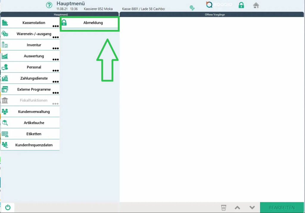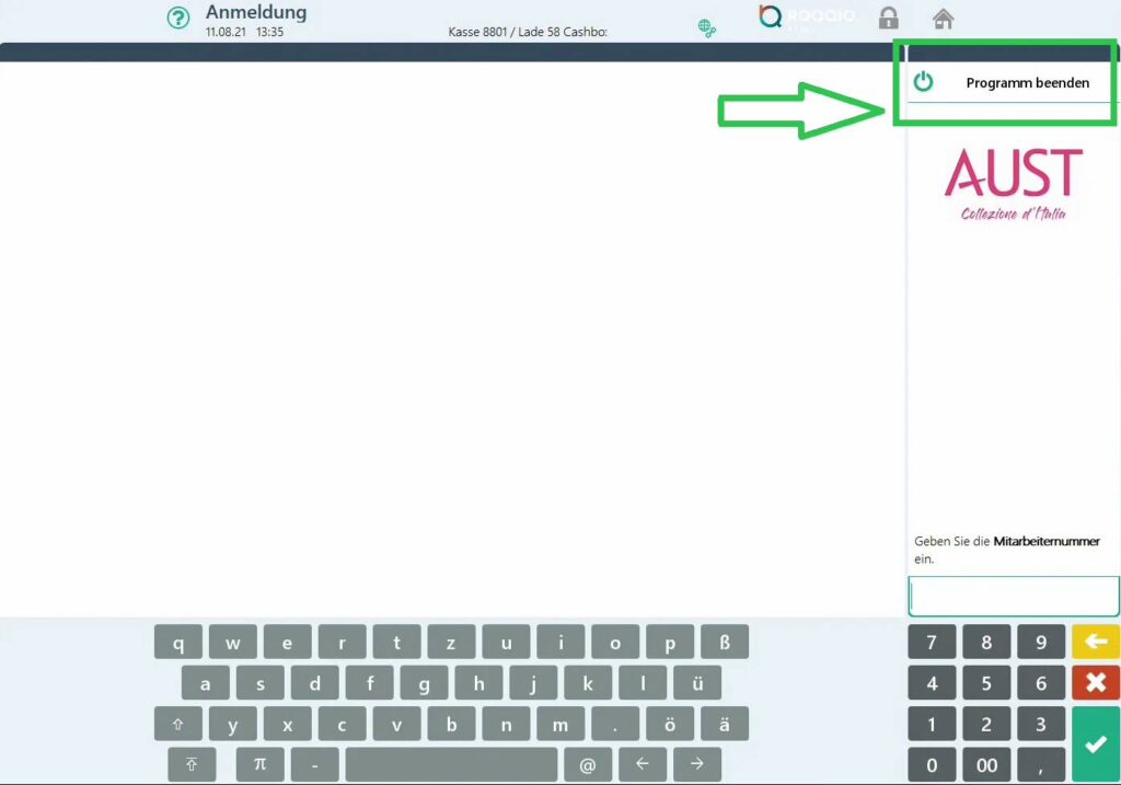 Um das Kassenprogramm am Abend zu beenden gehst du wie folgt vor.