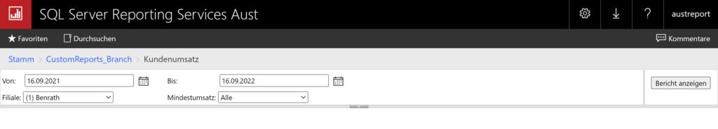 4. Gib den gewünschten Zeitraum ein, deine Filiale und den gewünschten Mindestumsatz (insofern du nur Kunden, ab einem bestimmten Einkaufswert darstellen lassen möchtest). Klicke dann rechts auf “Bericht anzeigen”