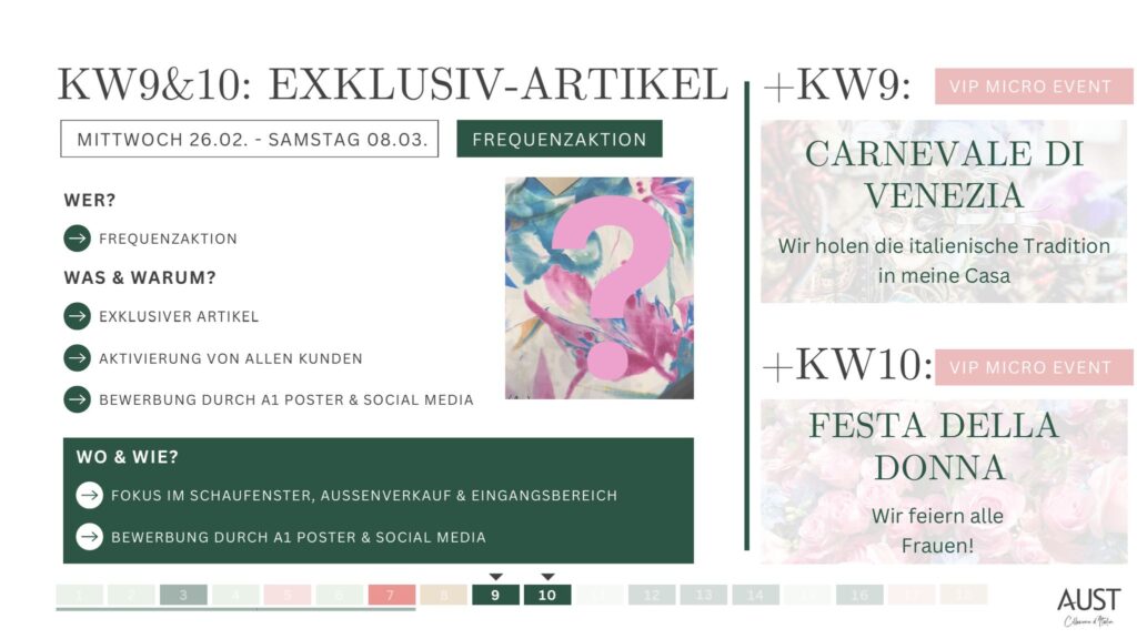 - Fokus auf Neukundinnen & Lieblingskundinnen – Begehrlichkeit & Frequenz steigern!