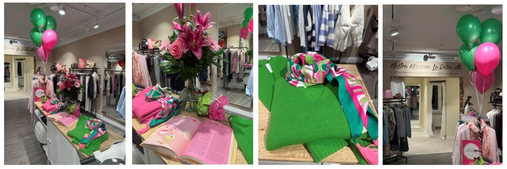 - Dekoriere die Pullover als “Key Piece” auf deinen Puppen im Schaufenster. Bitte nutzen beide Pullover Farben im Fenster nebeneinander, um verschiedenen Styles zu präsentieren und die Kunden zu inspirieren