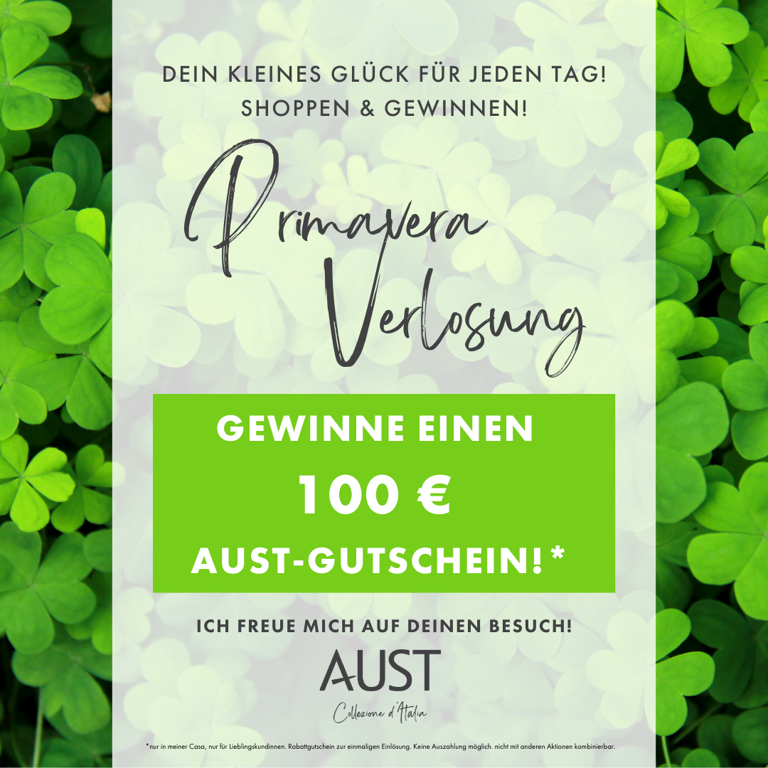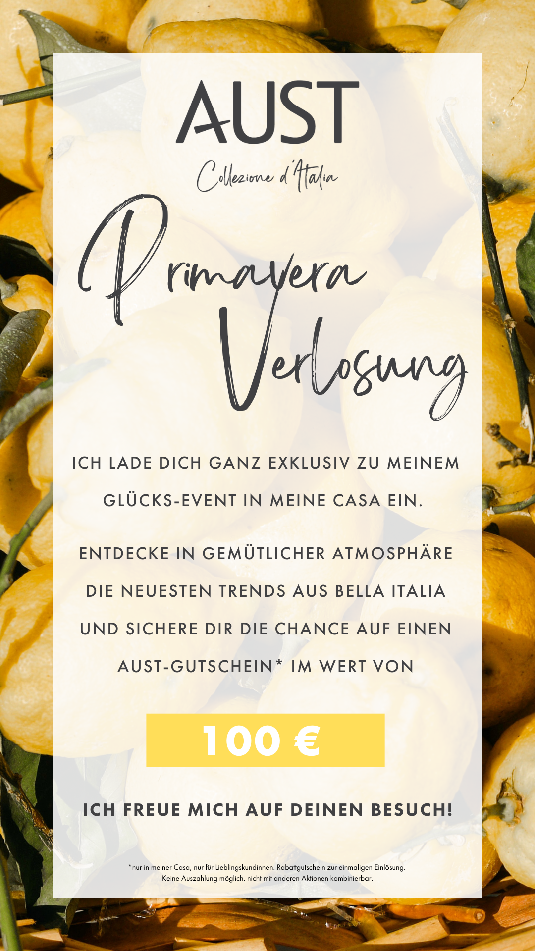 Nutze den März, um deine Kundinnen eine besondere Erfahrung zu schenken & sie weiter emotional an deine Casa zu binden. Die Verlosung bringt Spannung, Freude & das Gefühl, bei AUST etwas Besonderes zu erleben.
