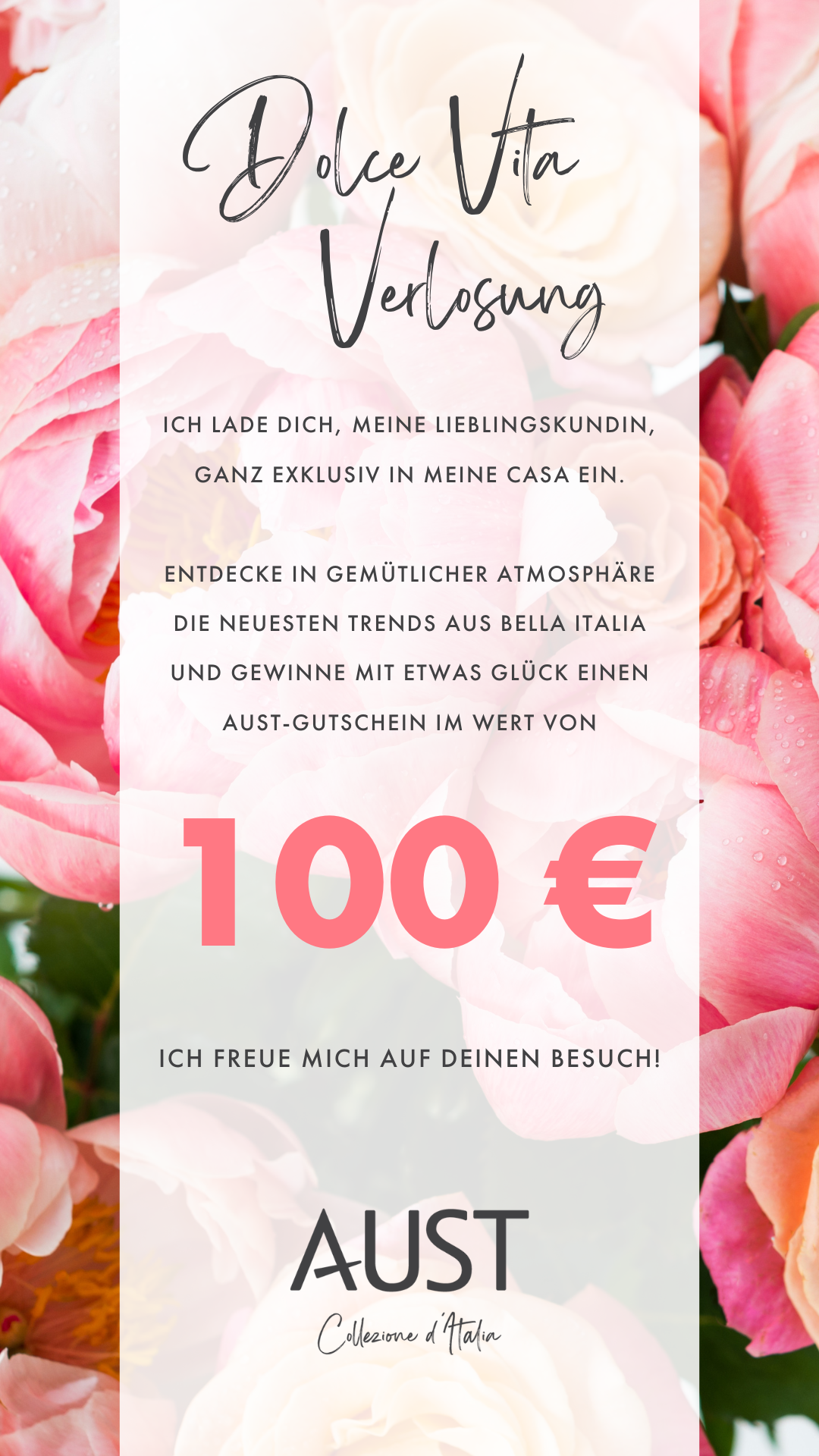 Und das Beste daran? Mit etwas Glück kannst du einen Gutschein von Aust im Wert von 100€ gewinnen, um deine nächste Shopping-Tour zu einem unvergesslichen Erlebnis zu machen!