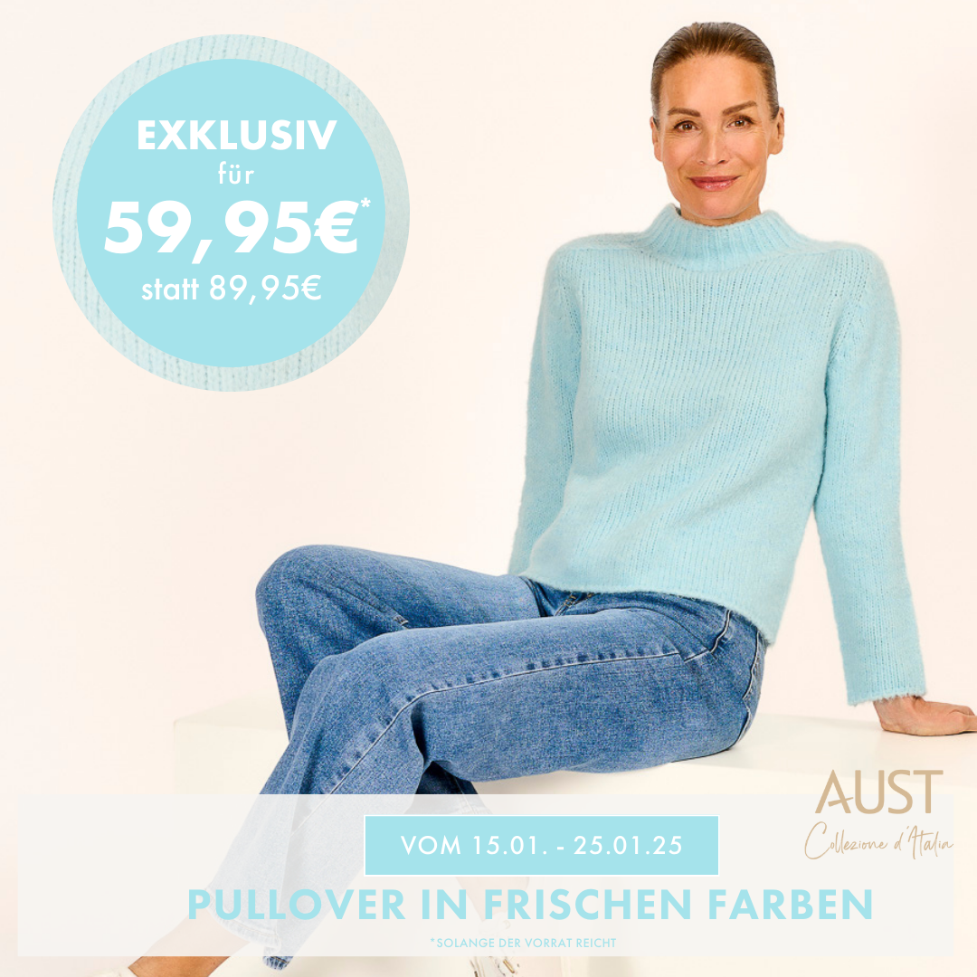 Vom 15.01. – 25.01.25 erhalten eure Kundinnen unsere wunderschönen Stehkragenpullover in zwei tollen Farben, die sanft sind und schon Lust auf Frühling machen. Udd dies zu einem absolut einmalig exklusiven Preis: 59,95€ statt 89,95€!