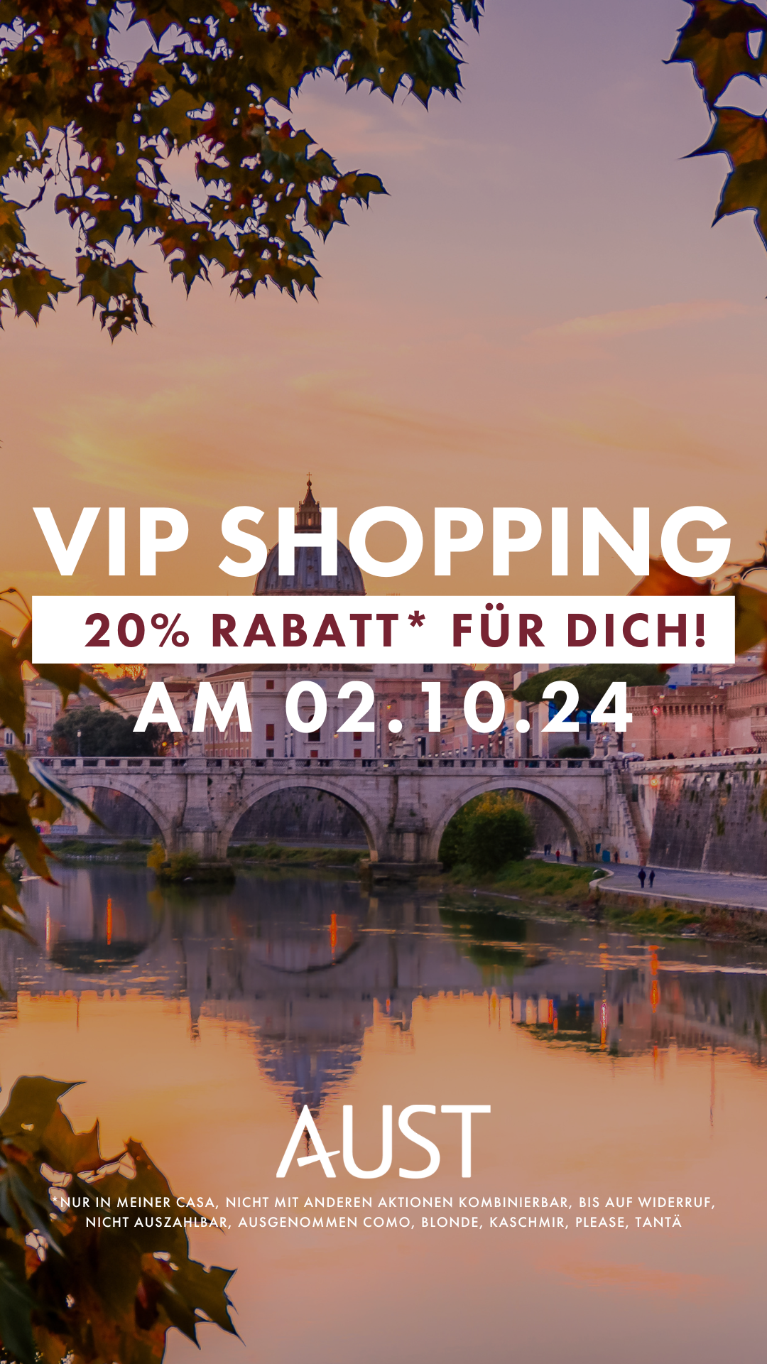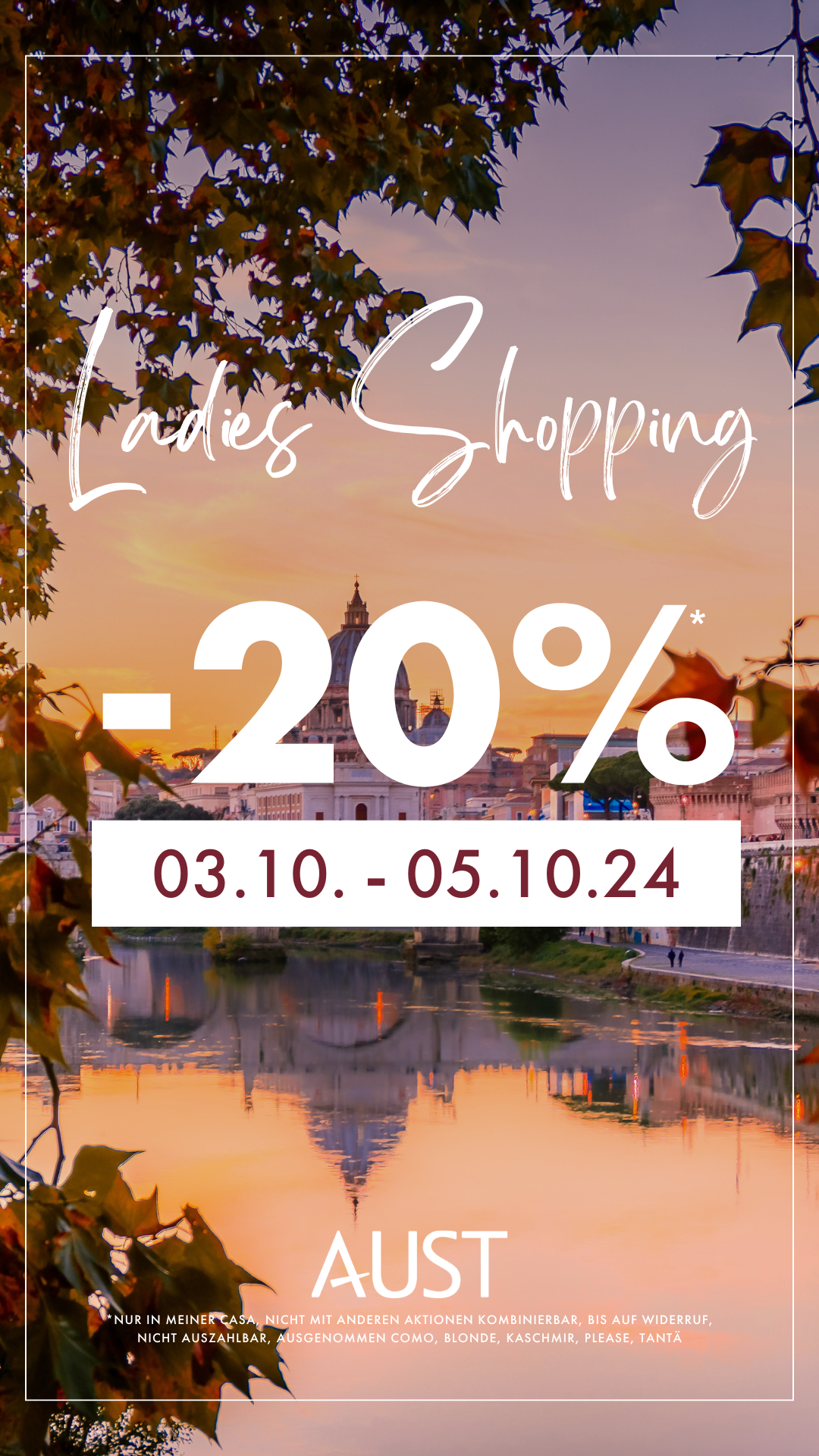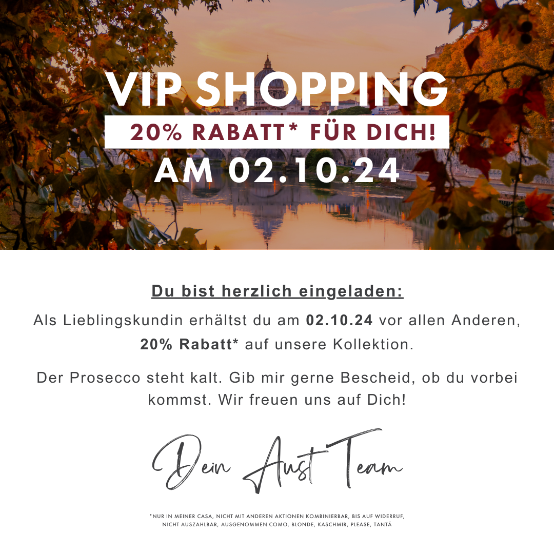 Passend zum Start in den Herbst steht unsere -20% Aktion in den Startlöchern. In Österreich feiern wir den WomanDay vom 03.10.24 – 05.10.24 plus VIP Pre-Event am 02.10. für eure Lieblingskundinnen (& 06.10. für alle Standorte mit Sonntagsöffnung).