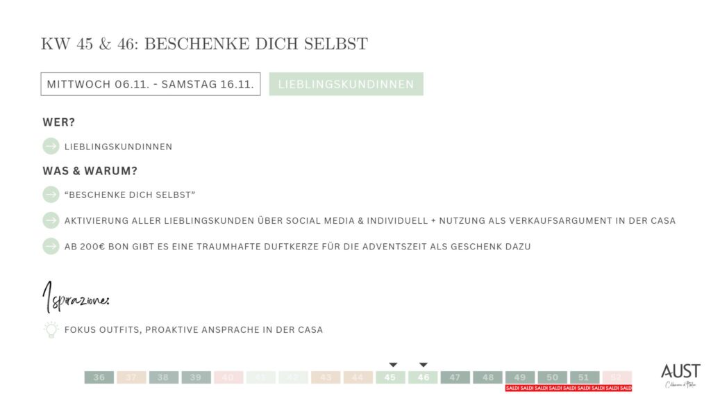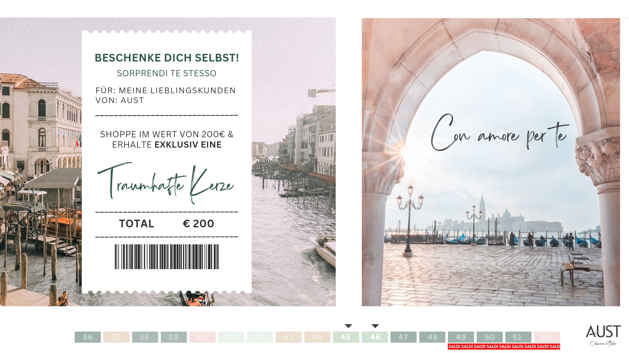Hinweis: Die 25€ Gutschein Aktion darf mit der “Beschenke dich selbst” Aktion kombiniert werden. Eure Kundin kann demnach für 200€ shoppen, den 25€ Gutschein der Vorwoche einlösen und bekommt trotzdem eine edle Duftkerze geschenkt 🕯️✨