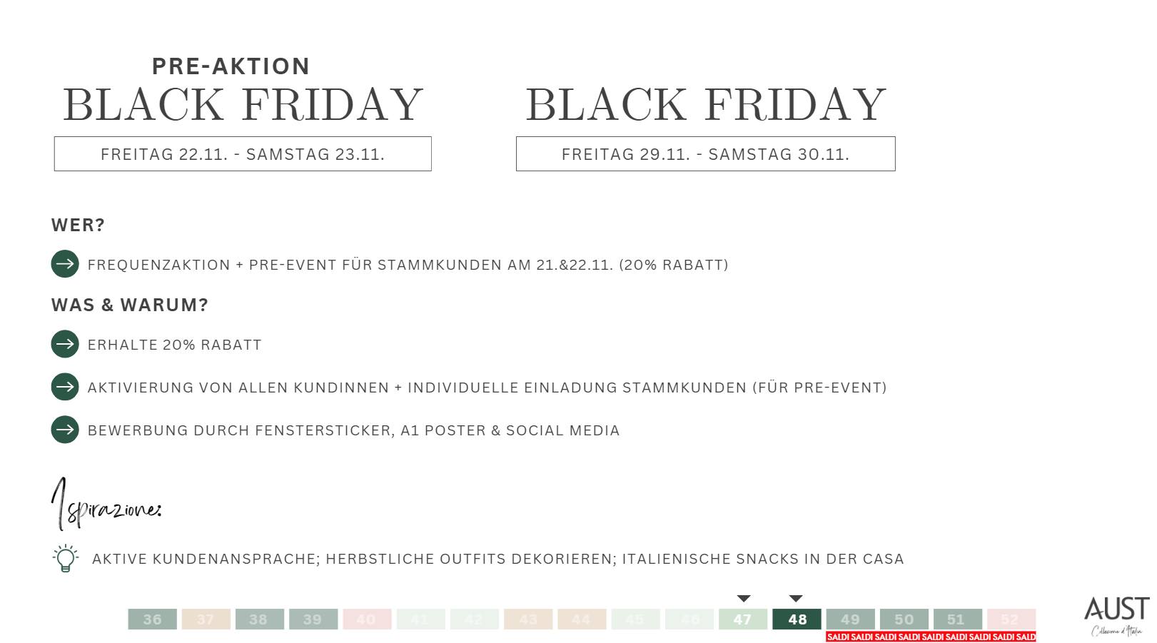 Vom 22. bis 23. November 2024 erhalten eure Lieblingskundinnen beim Pre Black Friday exklusiv 20% Rabatt* – und das noch vor dem großen Black Friday Trubel! Es ist euer kleines Dankeschön für ihre stetige Treue und ein liebevoller Moment, um ihnen zu zeigen, wie wichtig sie für euch sind.