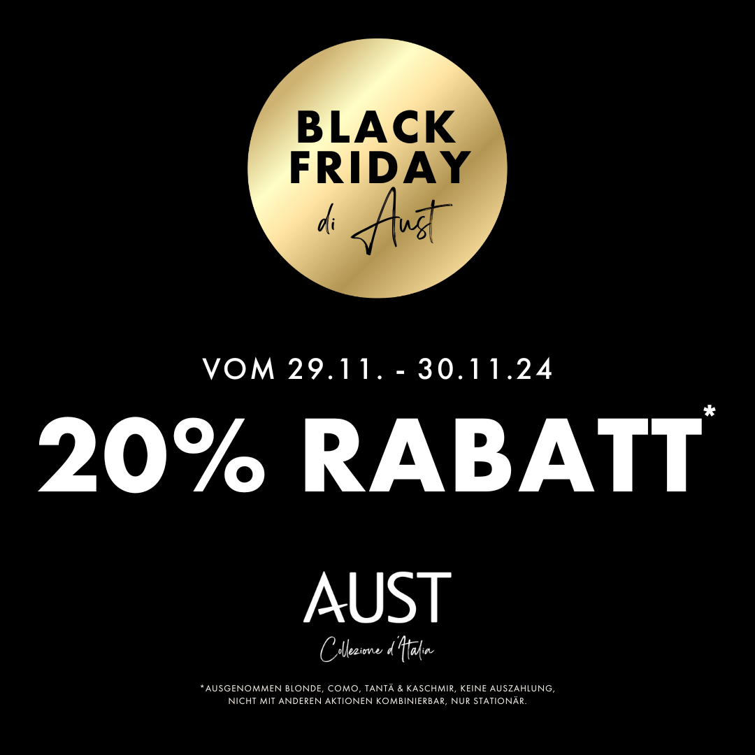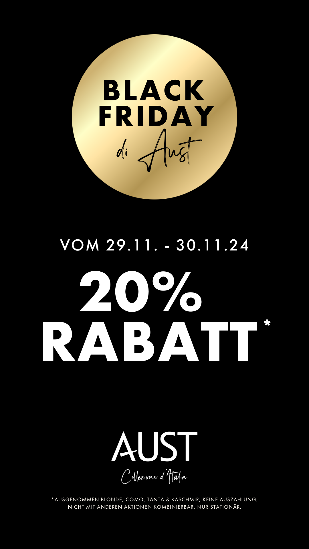 - Thema: Wir haben dich vermisst – denkt dran vorbeizuschauen und dir deinen Black Deal bei AUST zu sichern. Super dafür ist auch die Sprachnotiz oder ein kleines Video zur persönlichen Ansprache. -> Nutze auch hierfür die Liste von Sarah (erhaltet Ihr Anfang der Woche) mit Potentialkunden, die noch nicht da waren.