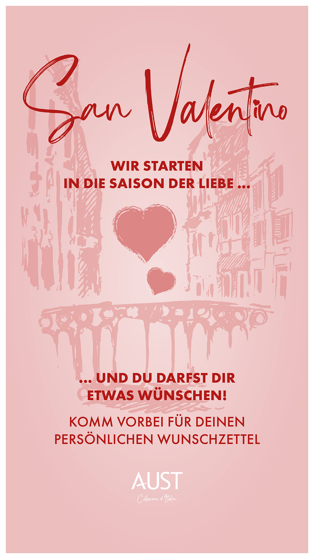 - Valentinstagspakete mit Prosecco, Schokolade & einem AUST-Gutschein – perfekt als Geschenkidee! (Vorbestellung durch die Liebsten)