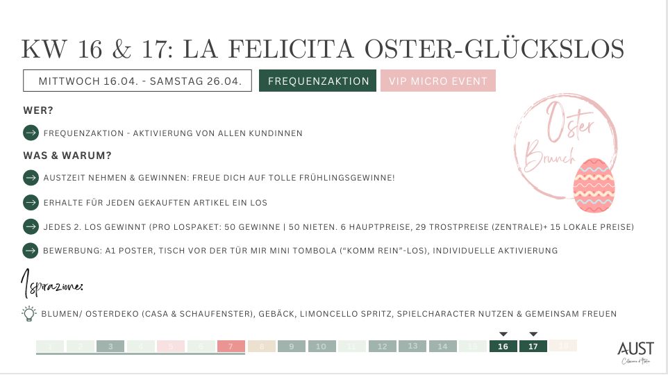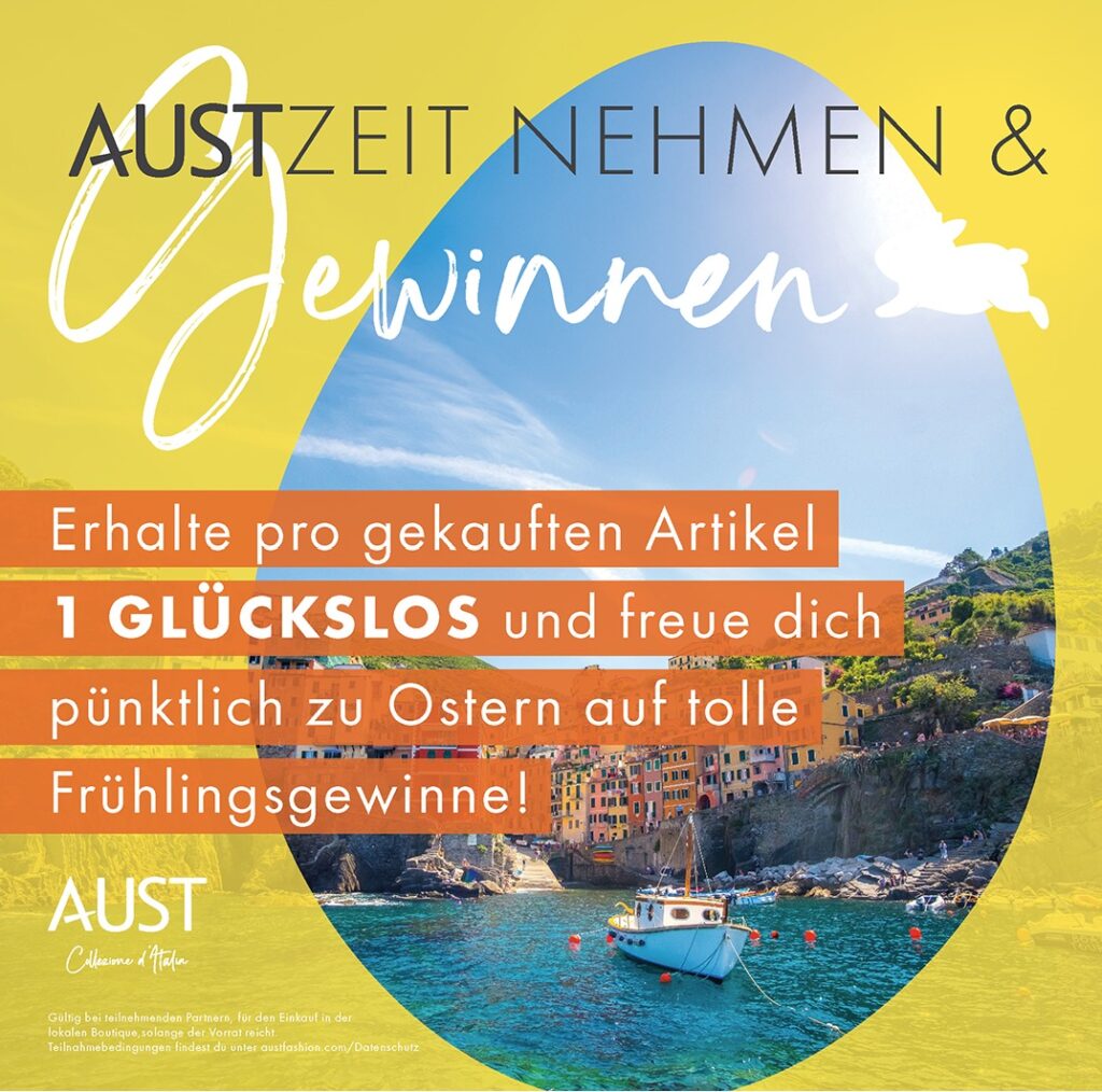 Ob Lieblingskundin oder Laufkundin: Diese Woche hat jede Kundin die Chance auf ein tolles Geschenk – und auf einen echten AUST-Moment. Osterfreude mit italienischem Flair, großer Begeisterung an der Kasse & mehr Umsatz auf dem Bon!💛