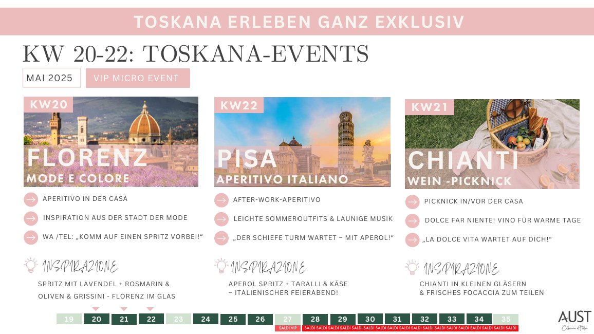 🎯 Zielgruppe: VIP Kundinnen, ausgewählt & individuell ( ergänzt mit neuen Gesichtern, die das Dolce Vita lieben)