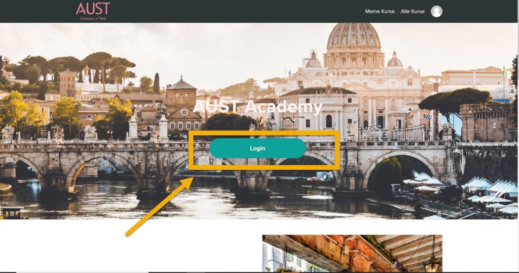 1. Öffne die AUST Academy über die entsprechende Box auf der Startseite “Il Mondo die AUST” oder über nachfolgende Verlinkung –> Hier geht’s zur AUST Academy