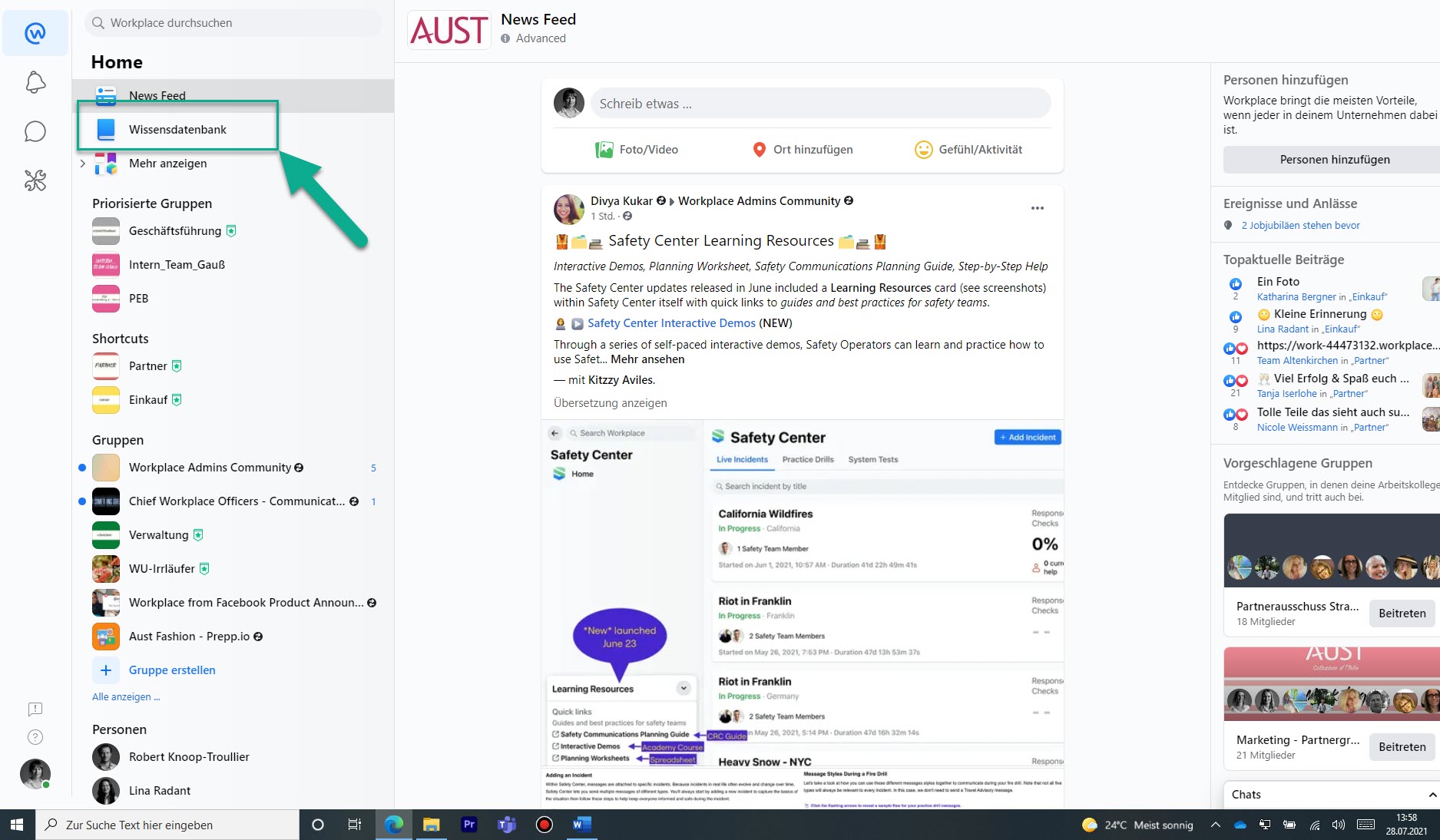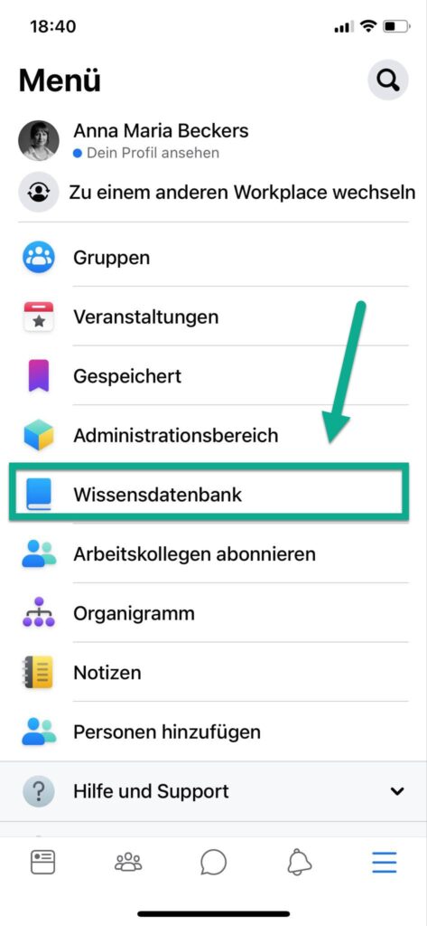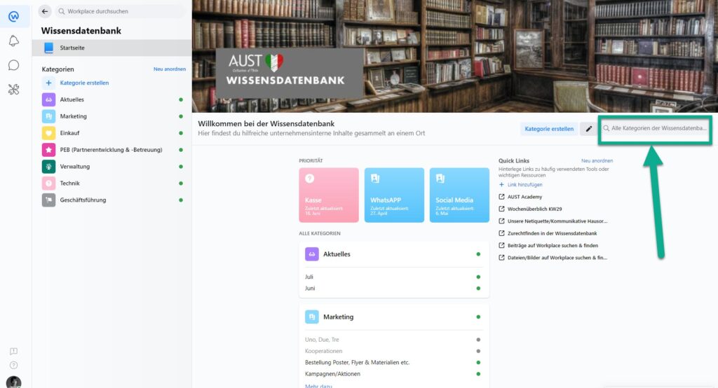 1. Wähle im Menü den Menüpunkt “Wissensdatenbank” (grün markiert) aus