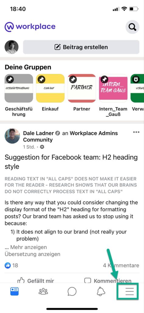 Dieses Beispiel zeigt zunächst Ansicht von Workplace auf dem PC/Computer und dann die Ansicht über ein iPhone/iPad.
