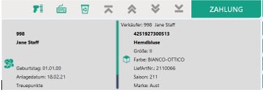 Hier werden zb. Infos zur Kundin, zu Artikeln oder zu Rabatten angezeigt