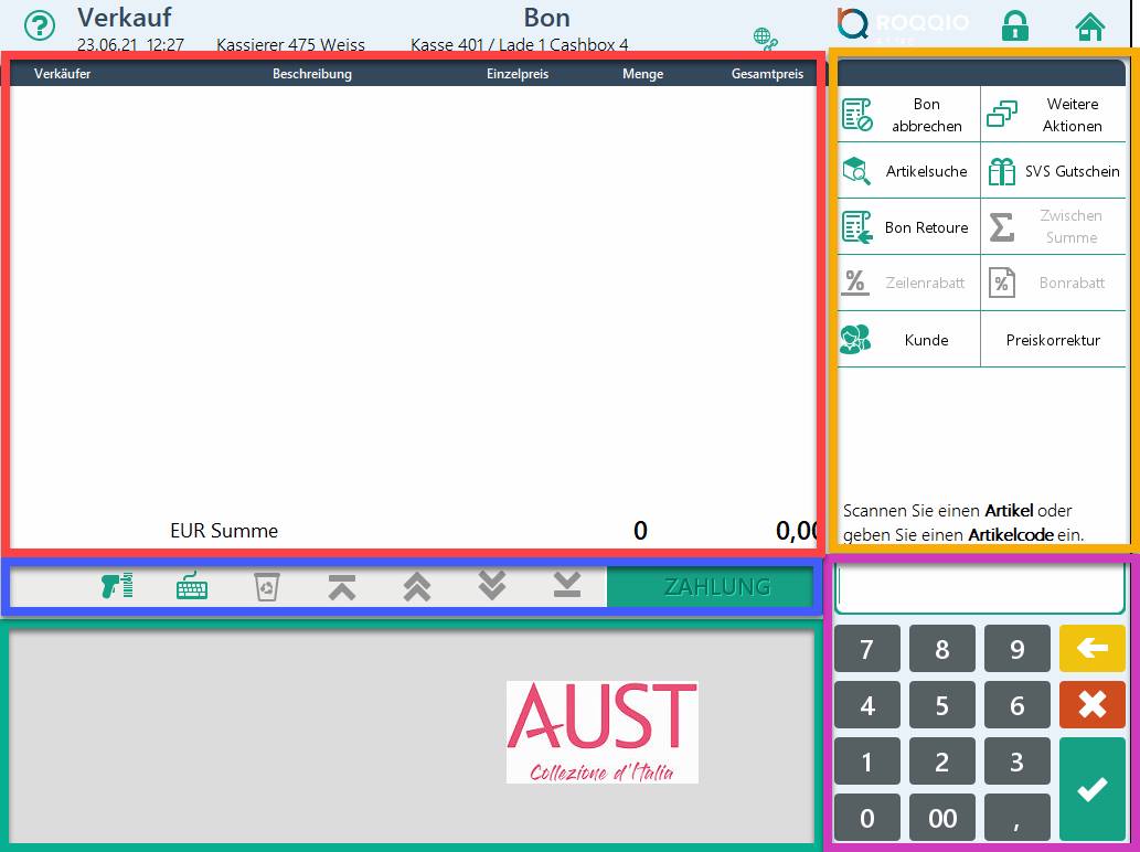 Die Verkaufsmaske setzt sich aus fünf Bereichen zusammen, welche wir dir hier kurz erläutern möchten.