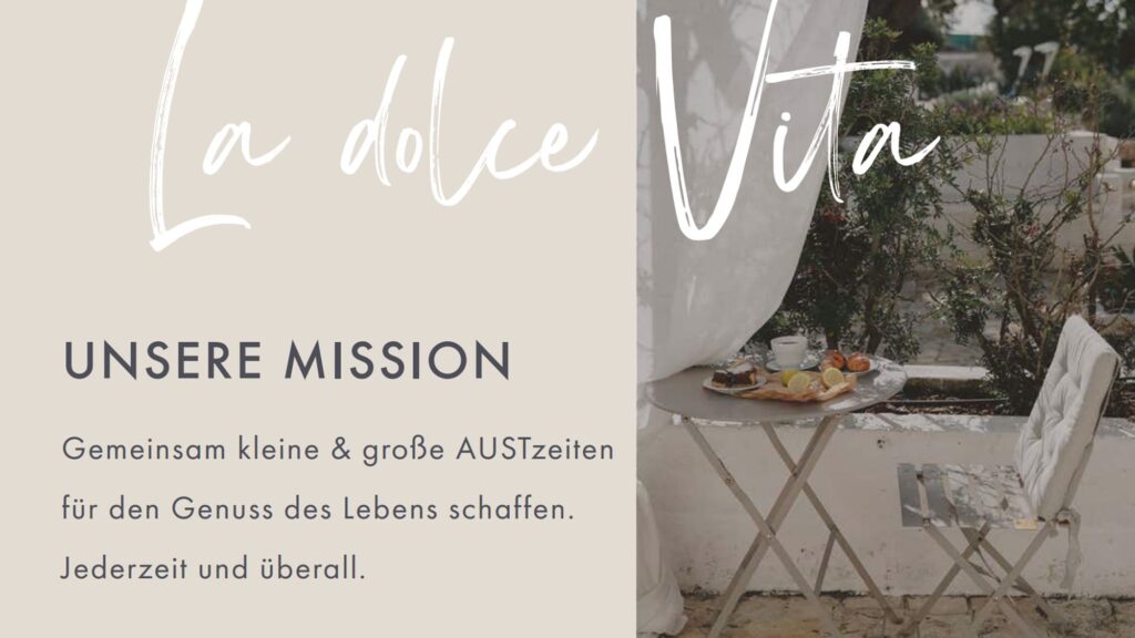 – Unsere Mission: gemeinsam kleine & große AUSTzeiten für den Genuss des Lebens schaffen. Jederzeit und überall