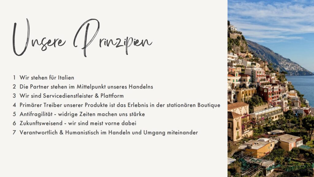 – Unsere Vision: wir bereichern das Leben alles Menschen mit mehr Lebensqualität durch Dolce-Vita-Momente